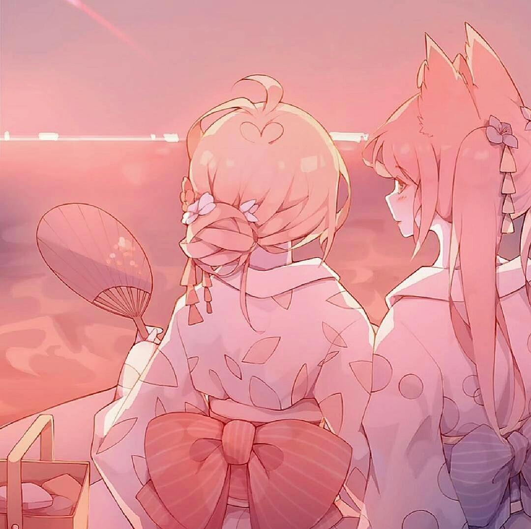 动漫闺蜜头像粉色系粉黑白可爱甜美