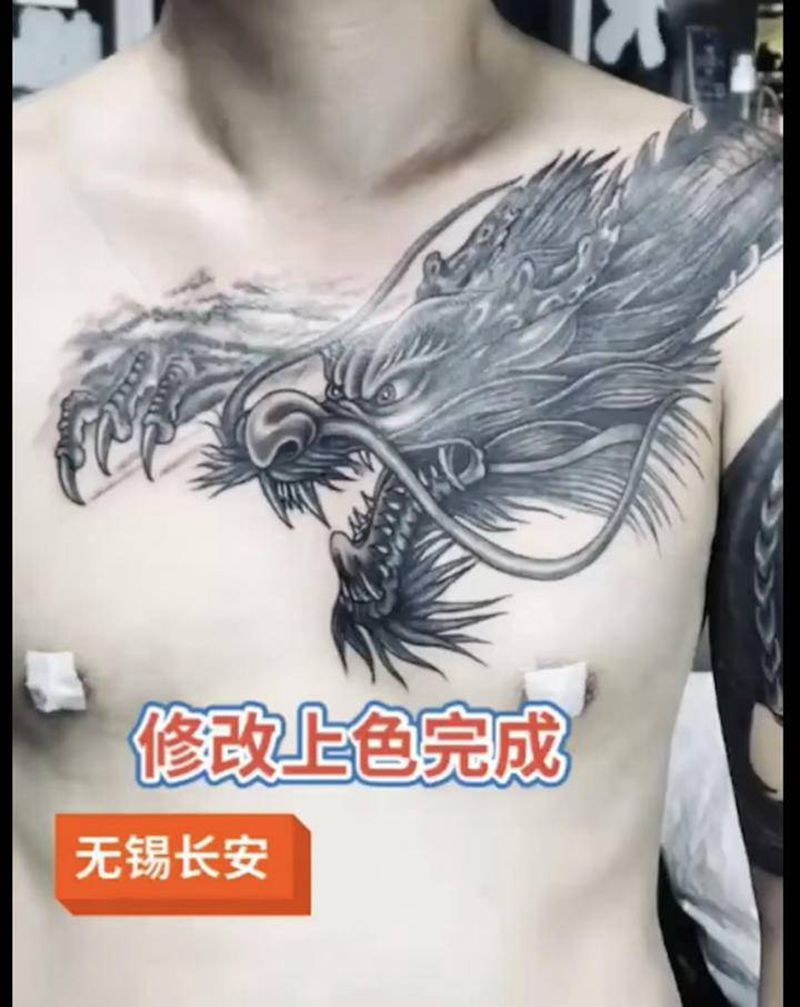 过肩龙纹身图案胸部过肩龙纹身图案