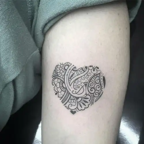 女生手臂上黑色几何心形抽象线条花纹纹身图片
