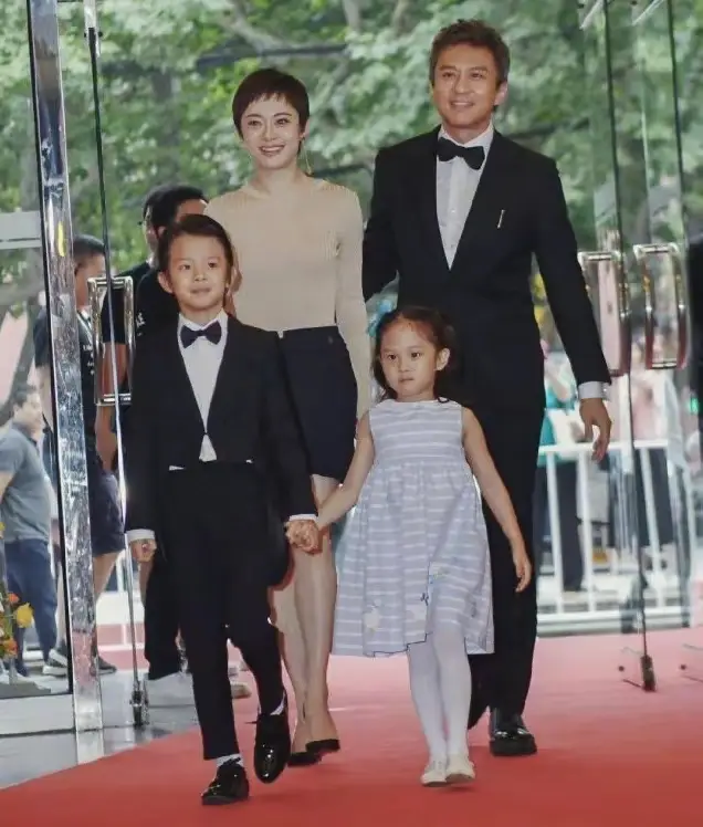 孙俪邓超和妻子孙俪,以及儿子邓涵之,女儿邓涵一,一家四口在一起珍贵
