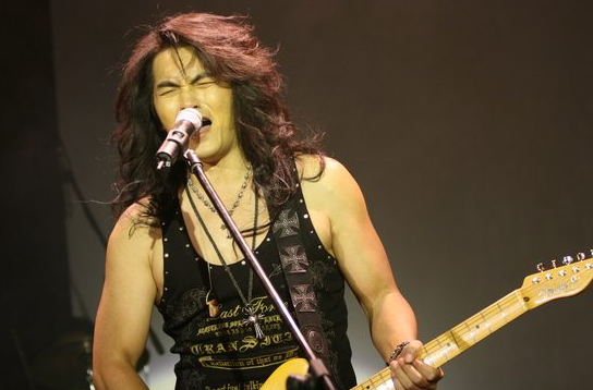 随着音乐节奏甩着长卷发,用沙哑的歌声让全场沸腾的迪克牛仔(听歌