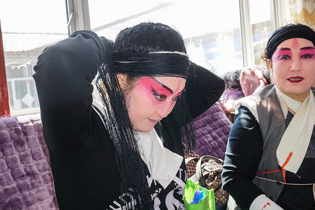我们到来时老郭的学生正在化妆和准备,左一是老郭的女儿,左二是初学者