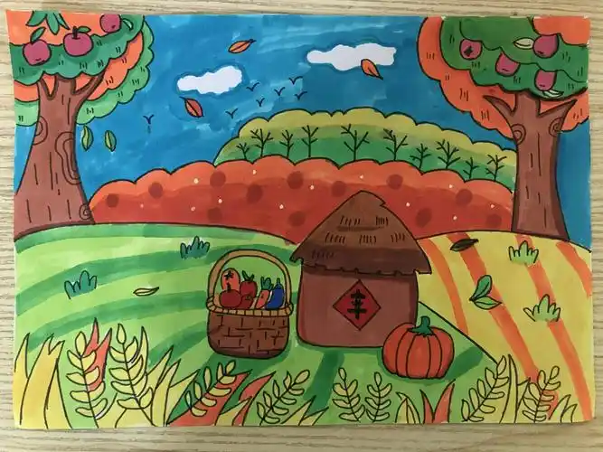 秋天风景画《小房子,大丰收》,一起画画吧.#创作灵感 秋天 - 抖音