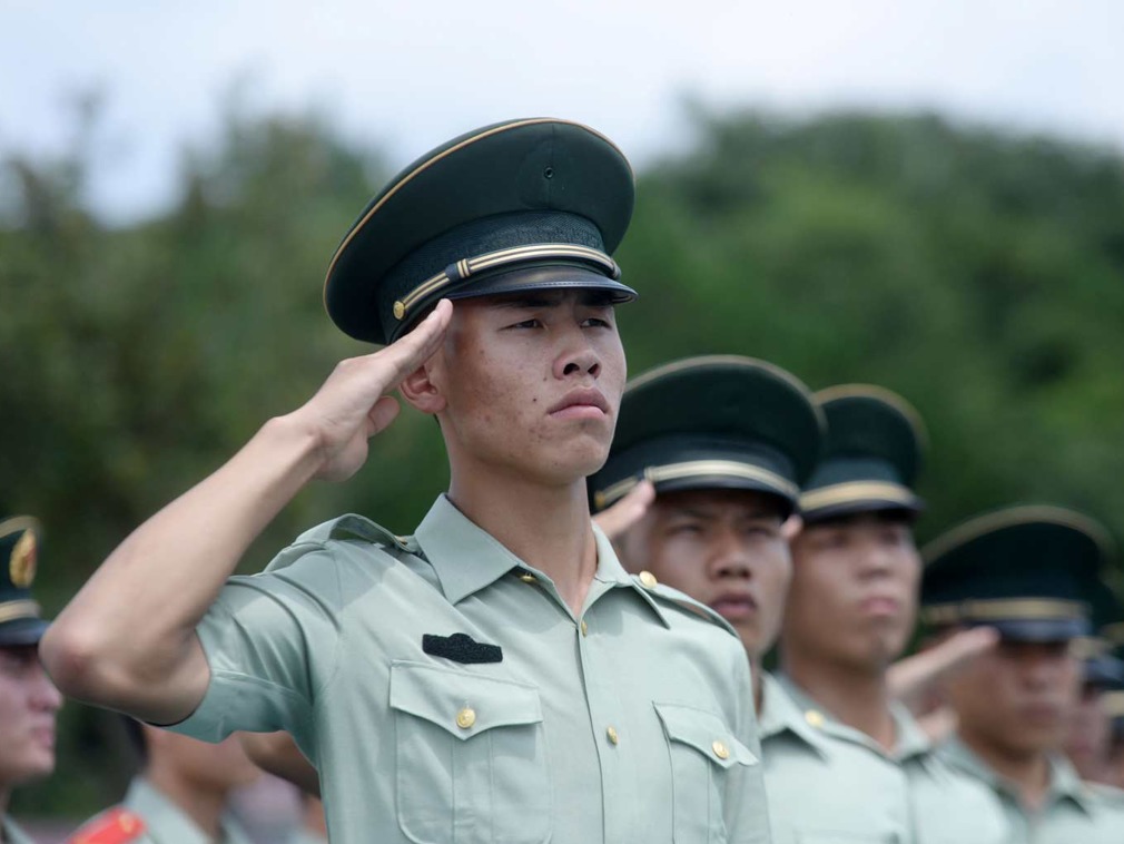 敬礼示范1: 昂首挺胸,仰望天空.
