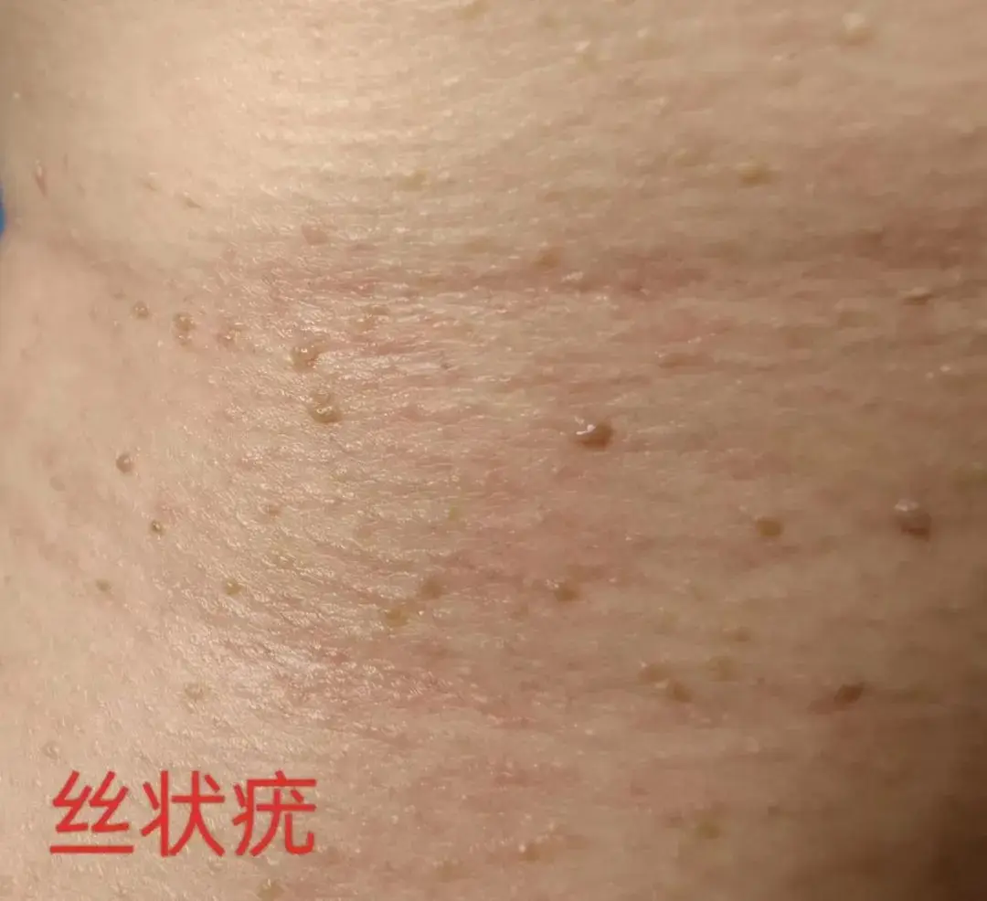 扁平疣,起初是肤色的凸起颗粒,很多人难以辨别,喜欢拿手扣越扣越大