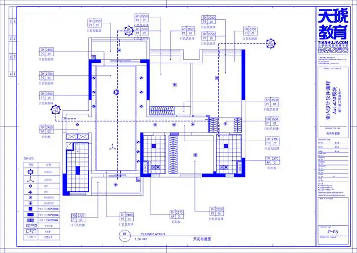 施工图-天花布置图/造型尺寸图/灯具开线图.