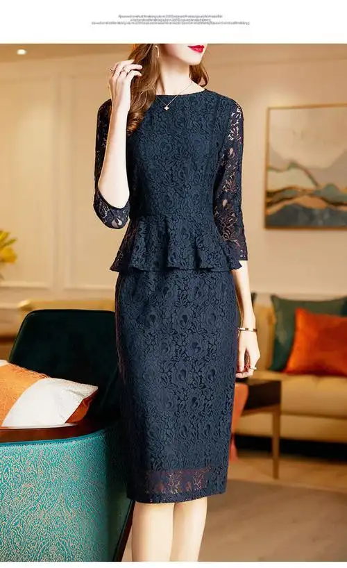 2020春装网红时尚女装一步裙修身收腰假两件套蕾丝连衣裙爱衣服商场