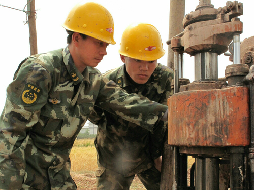 武警抗旱一线黄金部队已打井7眼出水率100%(图)