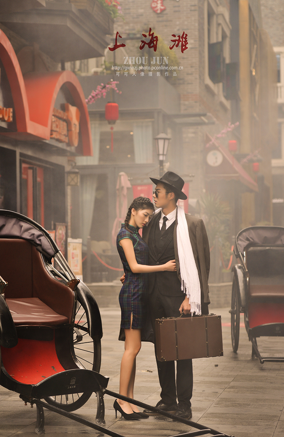复古怀旧老上海建筑街景墙纸上海滩民国时代经典旗袍女人海报壁纸