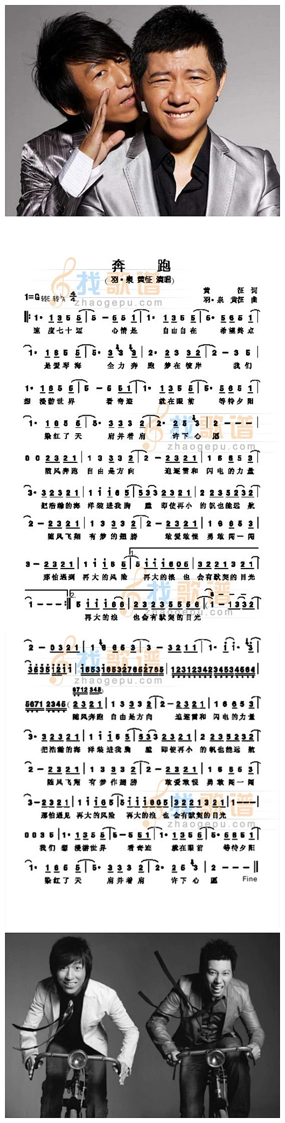 奔跑(黄征词 黄征 羽泉曲)高清打印歌谱简谱