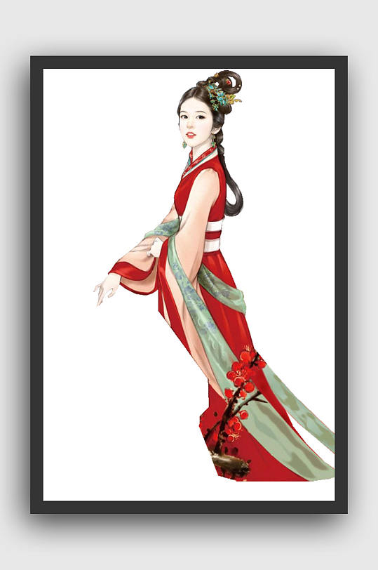 红色古装女子免扣图