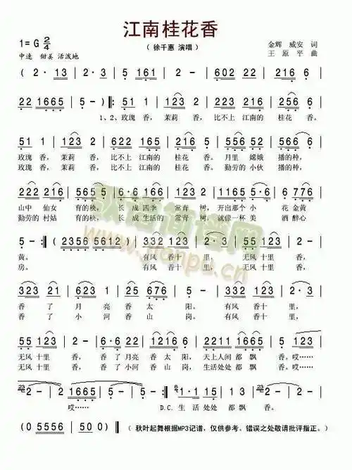 江南桂花香_歌谱简谱_哆来咪123曲谱网
