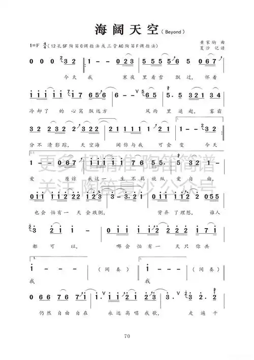 beyond海阔天空简谱,beyond海阔天空歌谱,beyond海阔天空歌词,曲谱