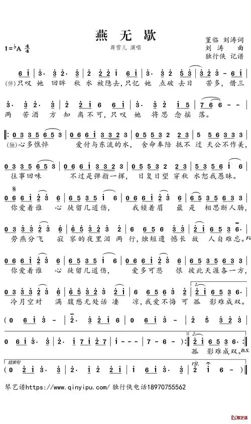 燕无歇简谱-蒋雪儿歌曲-独行侠曲谱1