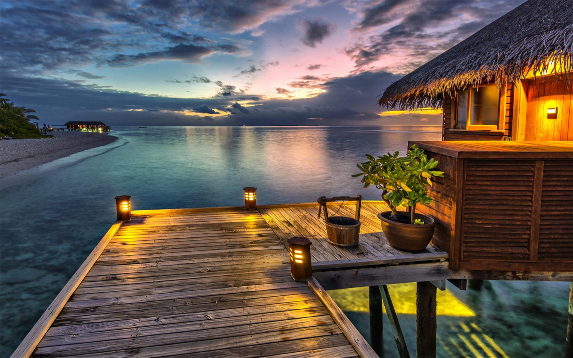 唯美浪漫海滩上的房屋,风景-回车桌面