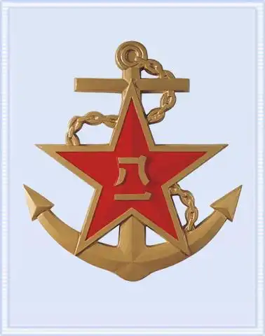 中国人民解放军海军军徽是"八一军徽"红色金边五角星加金色铁锚.