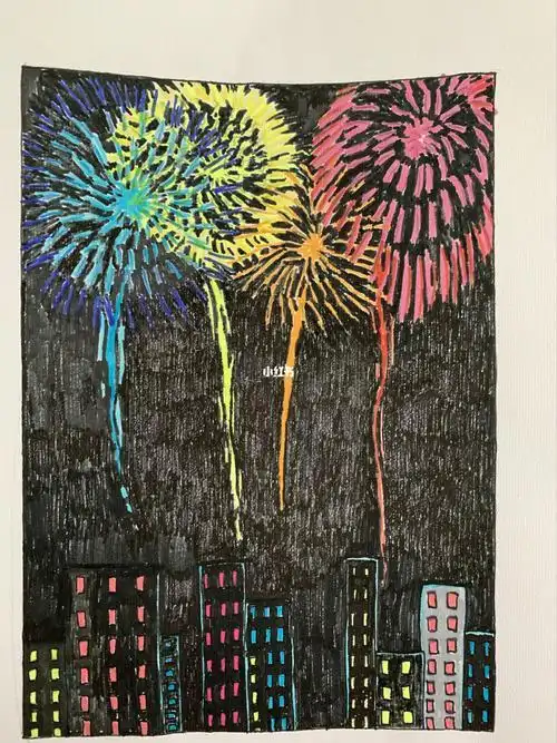 烟花烟火水彩画马克笔创意美术六岁儿童