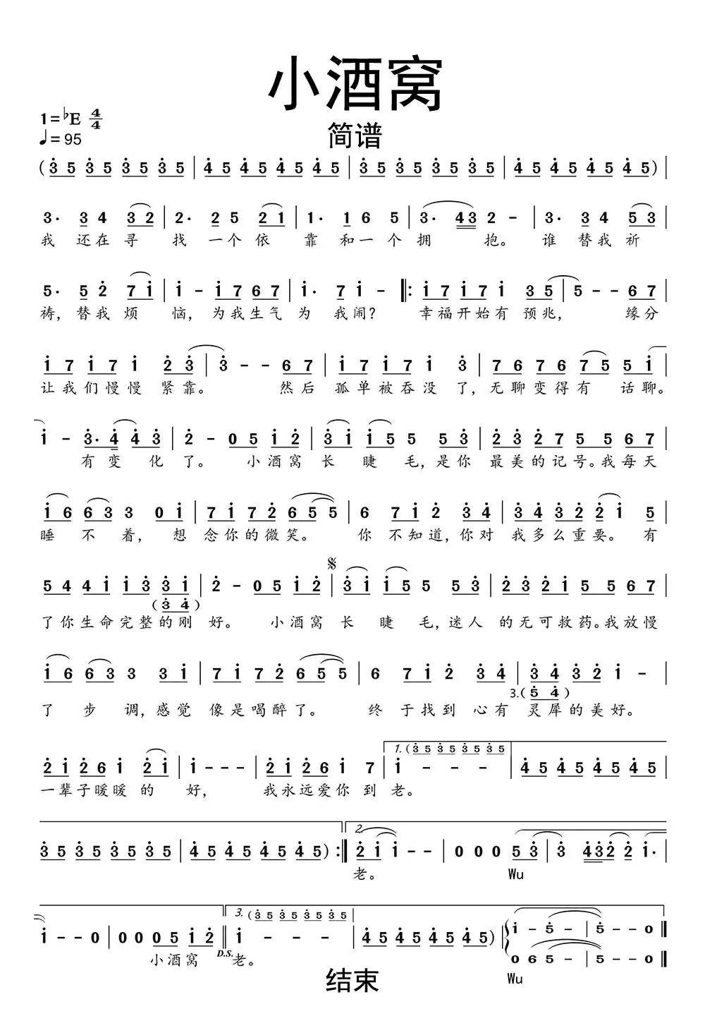小酒窝智能简谱林俊杰 蔡卓妍演唱-苍强曲谱
