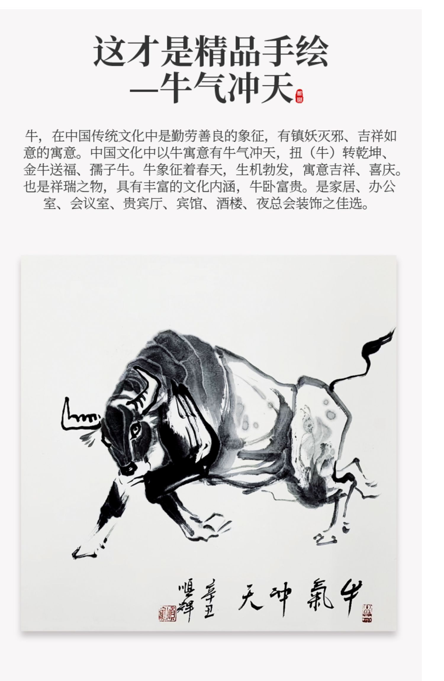 国画【牛气冲天】(四尺整张) 一般人画牛,都喜欢画"俯首甘为孺子牛"