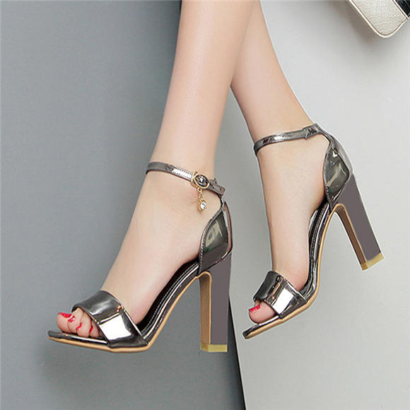 爱希仕牛漆皮超高跟粗跟凉鞋女夏防水台厚底时装鞋女时尚气质优雅水钻