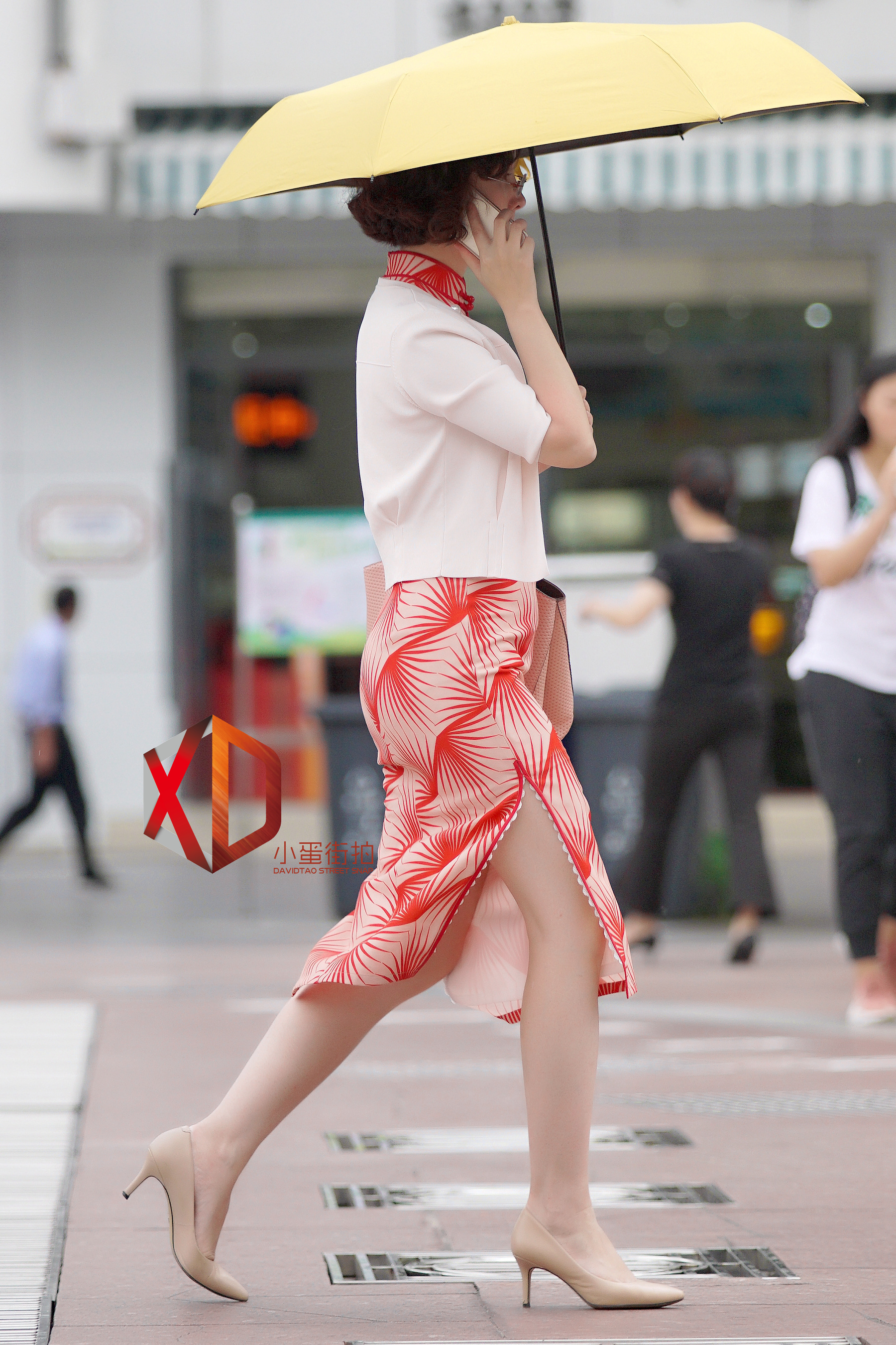 街拍广州:开叉裙,大白腿,白色短袖,身材丰腴而性感,惊艳路人