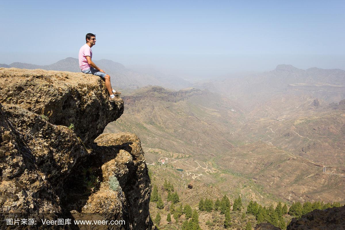 坐在悬崖峭壁上的人