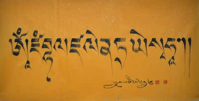 藏文书法黄财神心咒横版描金装饰画650665唐卡描金心经diy手绘邦基