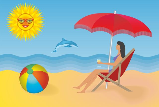 设计手绘卡通人物与海边沙滩元素原创插画海报夏天夏日夏季手绘卡通