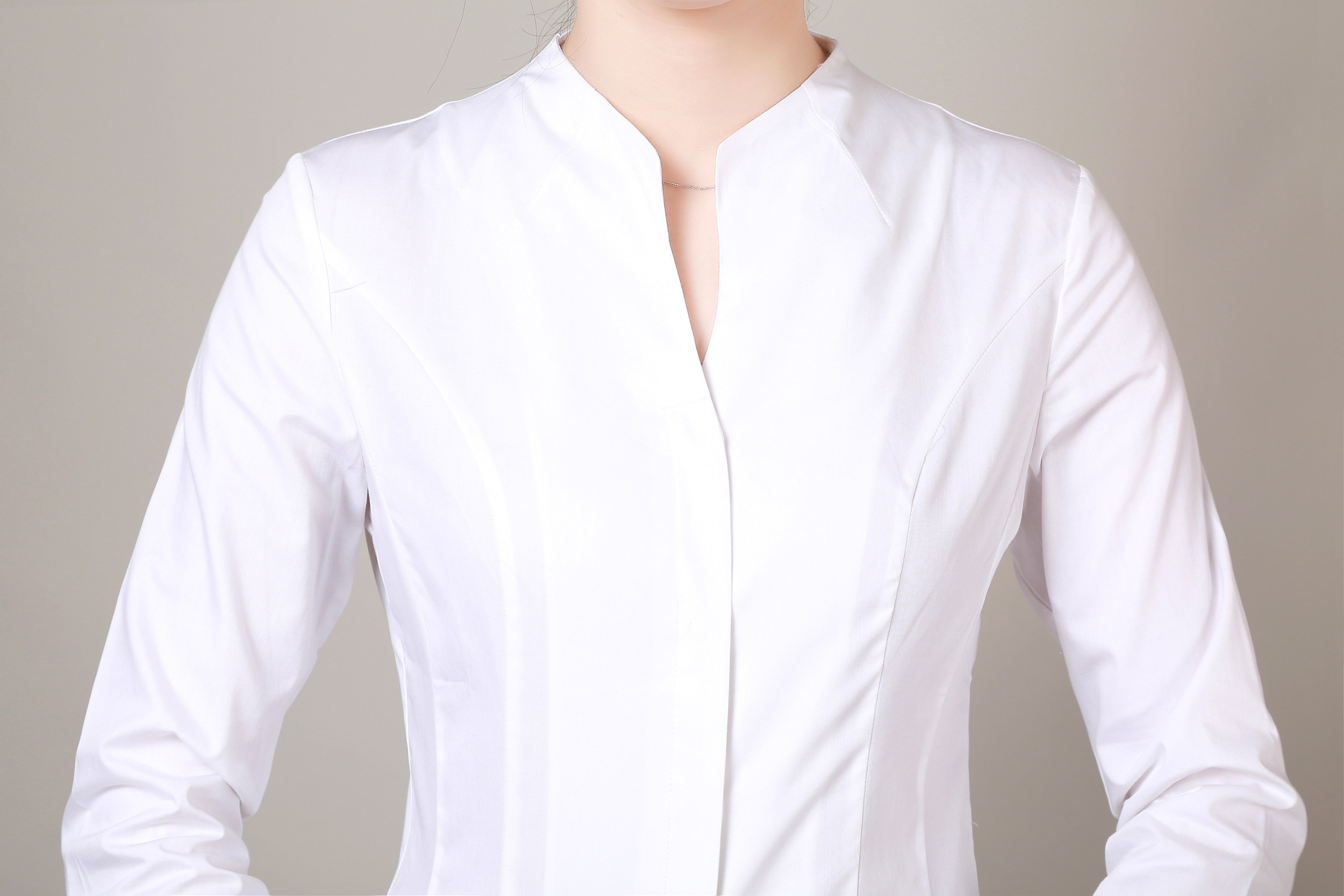 新款白衬衫女v领职业装正装休闲长袖衬衫气质女士衬衣 白色 细微纹路