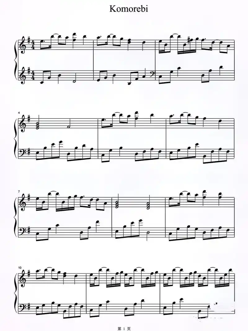 komorebi钢琴谱分享.(komorebi简谱 komo - 抖音