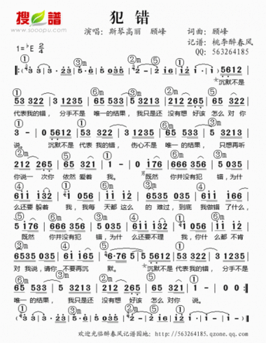 犯错简谱_斯琴高丽/顾峰犯错曲谱下载