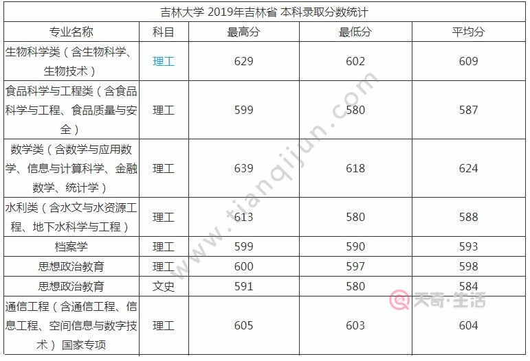 吉林大学分数线