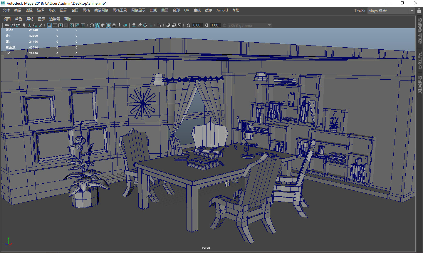 maya场景模型 室内场景模型 桌子 椅_小荣设计作品_场景/空间/建筑_cg