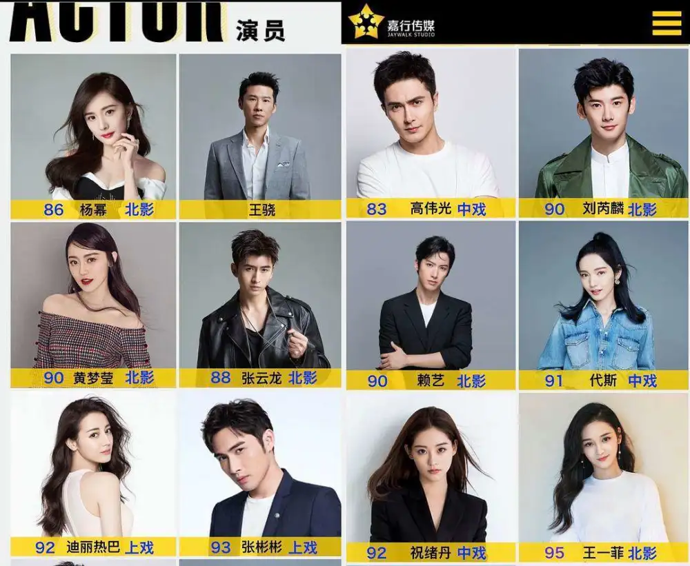 中国演员杨幂宣布离开嘉行传媒,不少粉丝关心嘉行传媒还剩下哪些艺人
