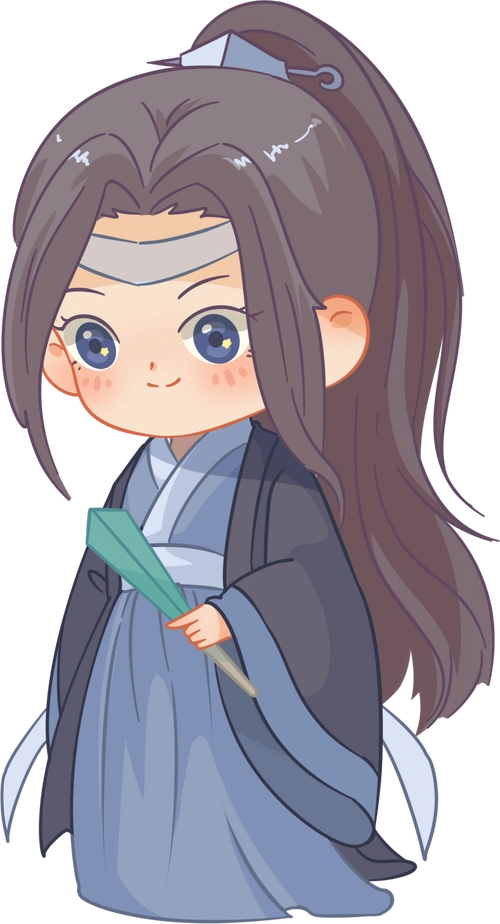 可爱蓝色插画汉服手绘彩色手绘插画q版童趣侠客图片