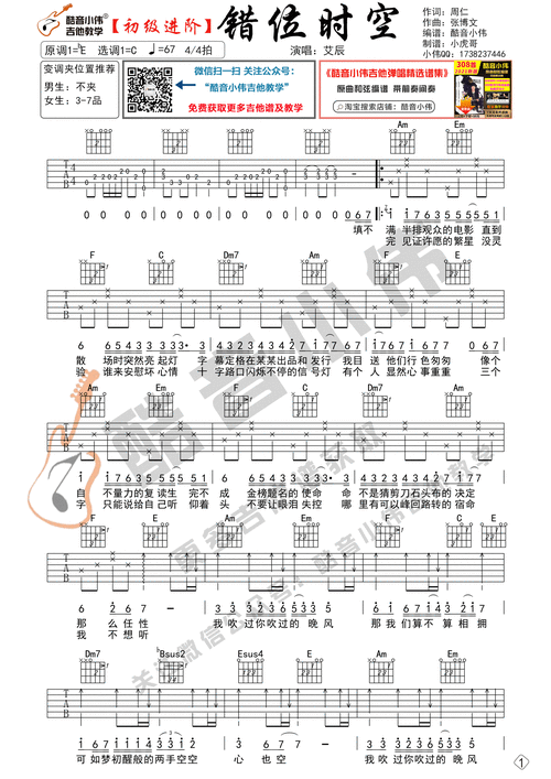 错位时空吉他谱 c调六线谱_酷音小伟编配_艾辰1