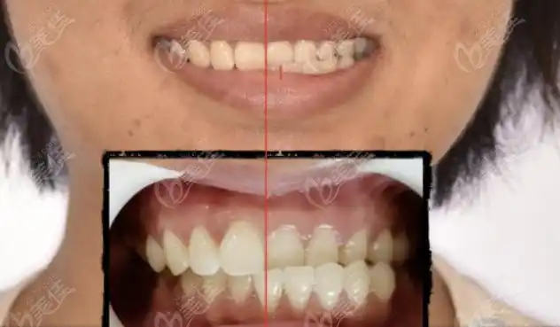 能看出来因为牙齿问题,下巴,整个脸都是歪的现在的.中缝尽量对齐.