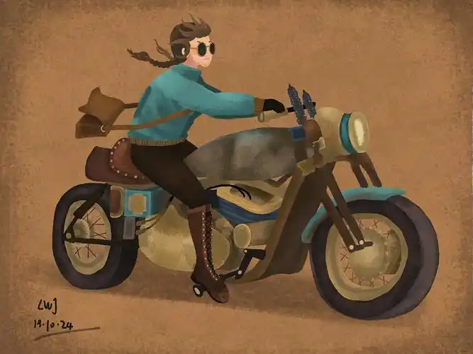 机车手绘头像女骑卡通插画摩托定制微信约稿