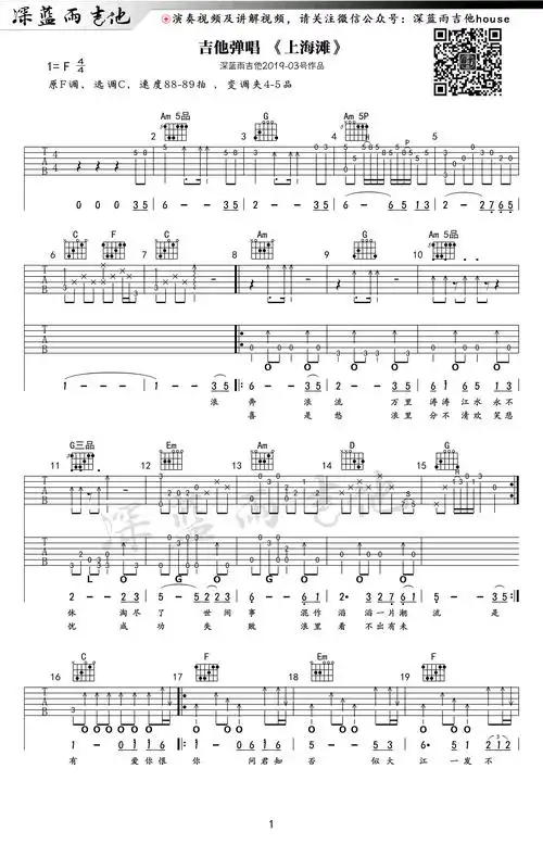上海滩吉他谱_刘德华_c调指弹_蓝草吉他编配 - 吉他世界