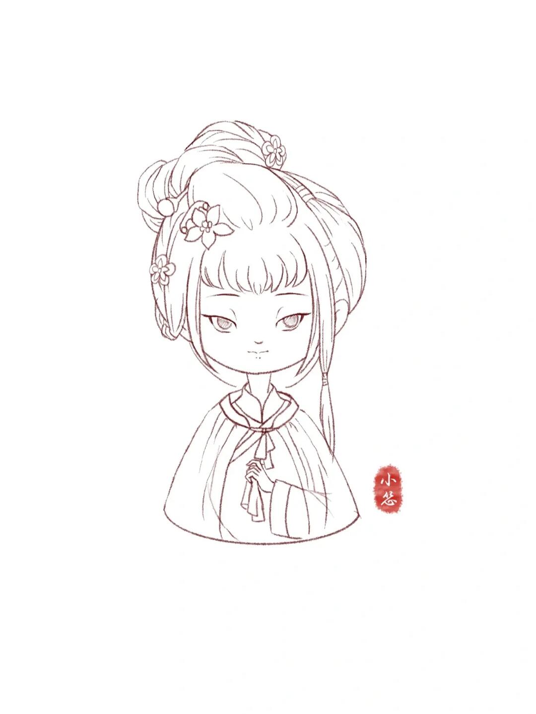 卡通简笔画超可爱古风小姑娘简笔画q版人物简笔画古风可爱古风小姑娘