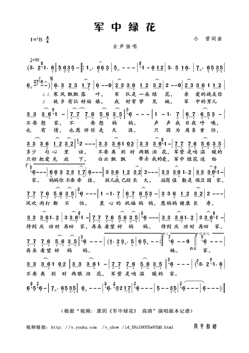 军中绿花简谱-小曾演唱-小曾,颂今/小曾,颂今词曲1