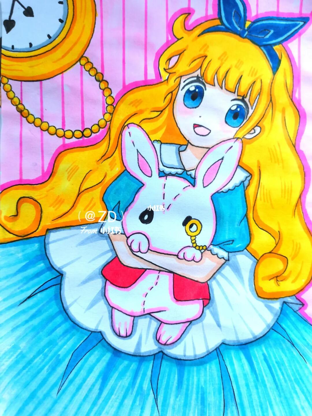 萌萌哒爱丽丝手绘,希望你们喜欢呀,爱丽丝 马克笔 手绘 动漫 q版