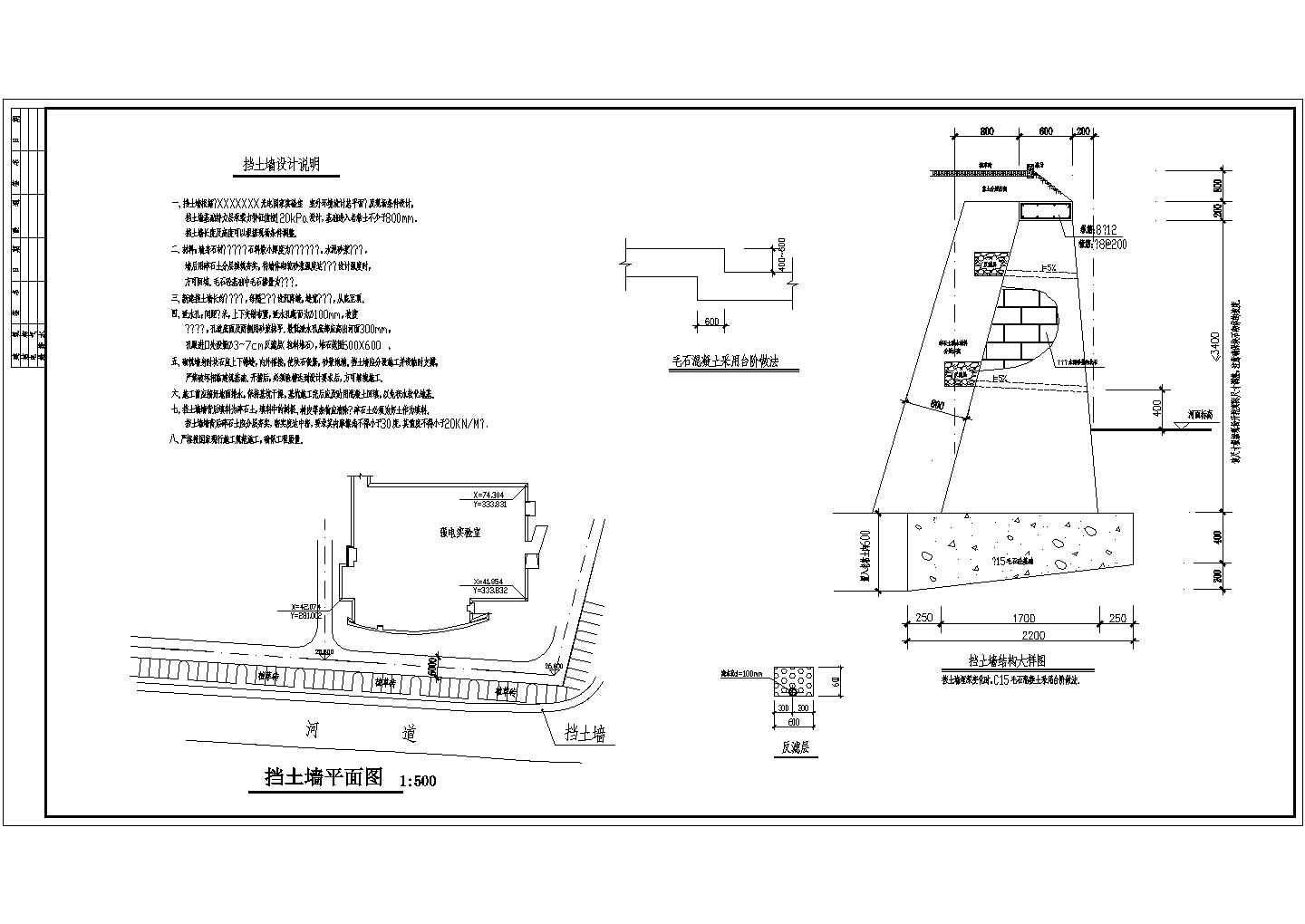 挡土墙设计_某mu30毛石挡土墙结构施工cad图