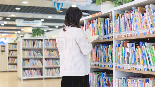 图书馆 i>女 /i> i>性 /i>手拿书本阅读背影4k实拍