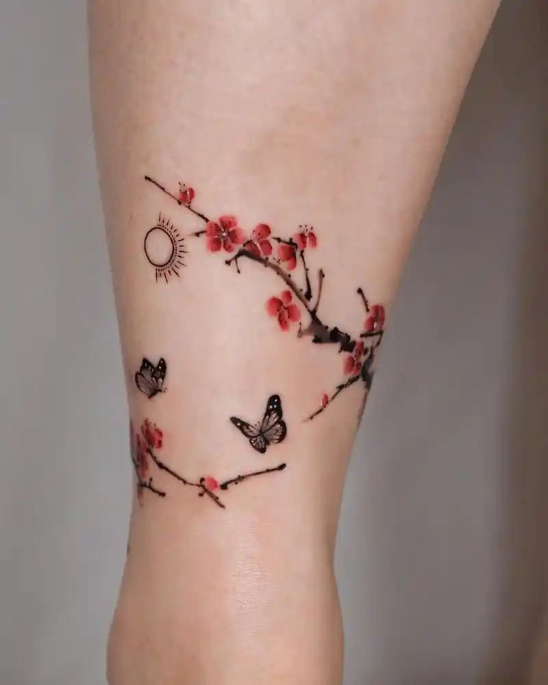 傲骨红梅脚踝刺青:愿逆风如解意,容易莫摧残 #水墨梅花刺青 - 抖音
