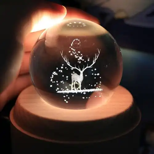 水晶摆件可刻字发光水晶球小夜灯卧室生日礼物女生送情侣男闺蜜礼品