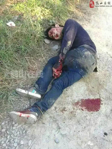 图文:受伤的男子浑身是血