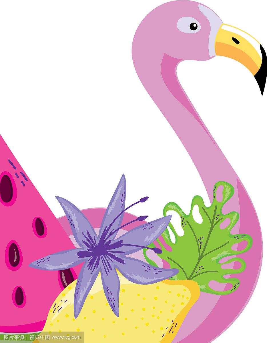 可爱的卡通火烈鸟孤立在白色的背景.平的风格.矢量插图.