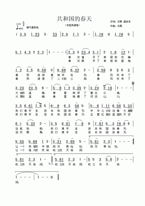 共和国的春天_歌谱简谱_哆来咪123曲谱网