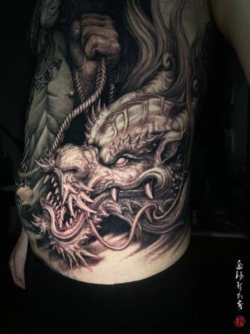 纹身大咖岳恒的《心灯》石雕龙与油灯手臂纹身作品创作过程